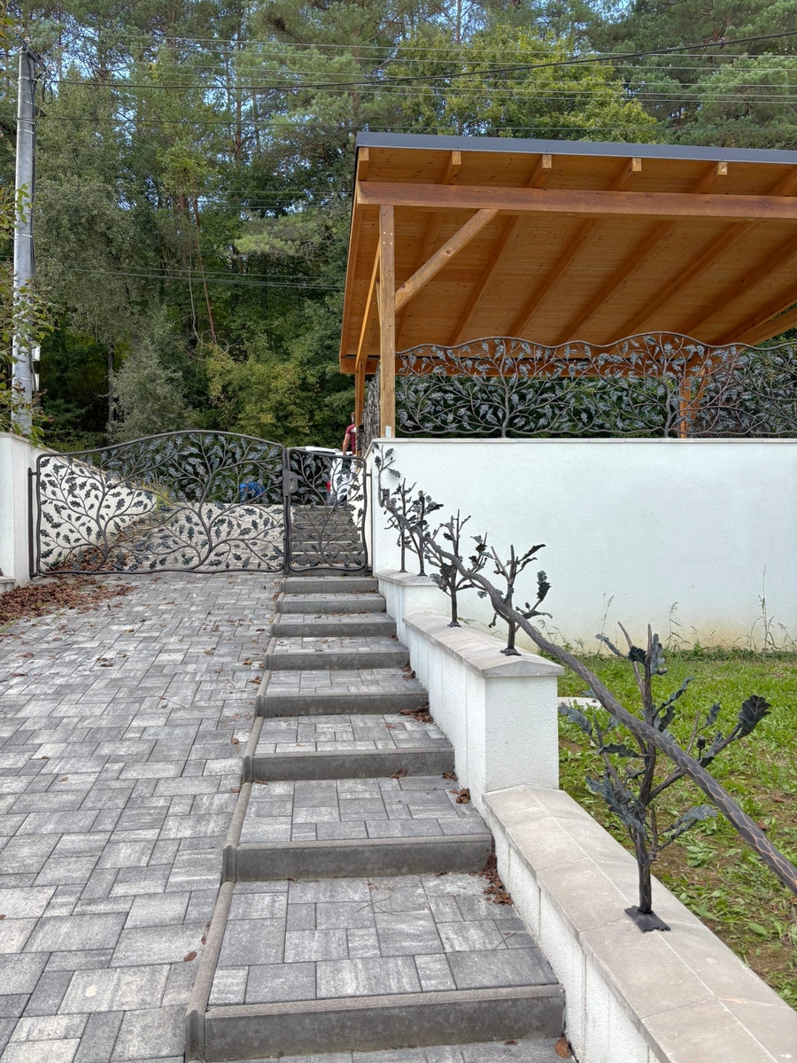 Luxusná ručne kovaná brána s dubovými konármi - oplotenie rodinného domu v dedinke pri Humennom